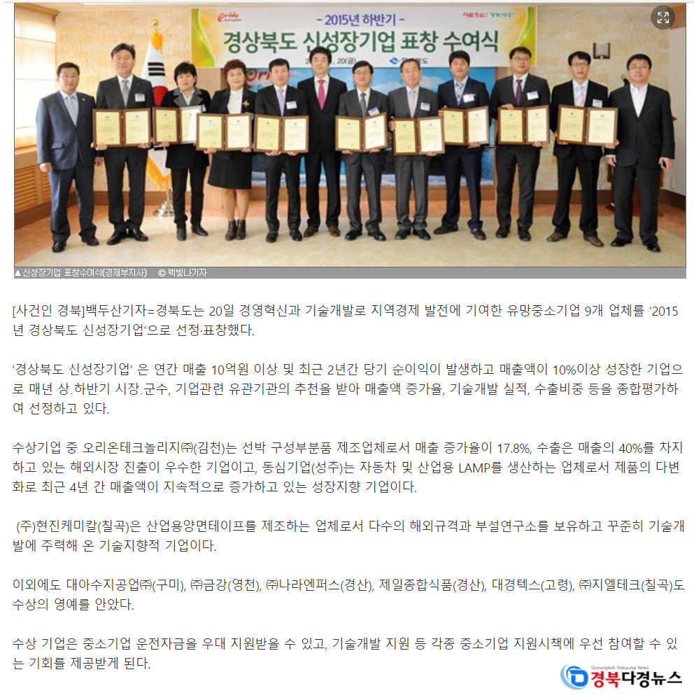 2015년 11월 22일 2015년 경상북도 신성장기업 표창 [경북다경뉴스]