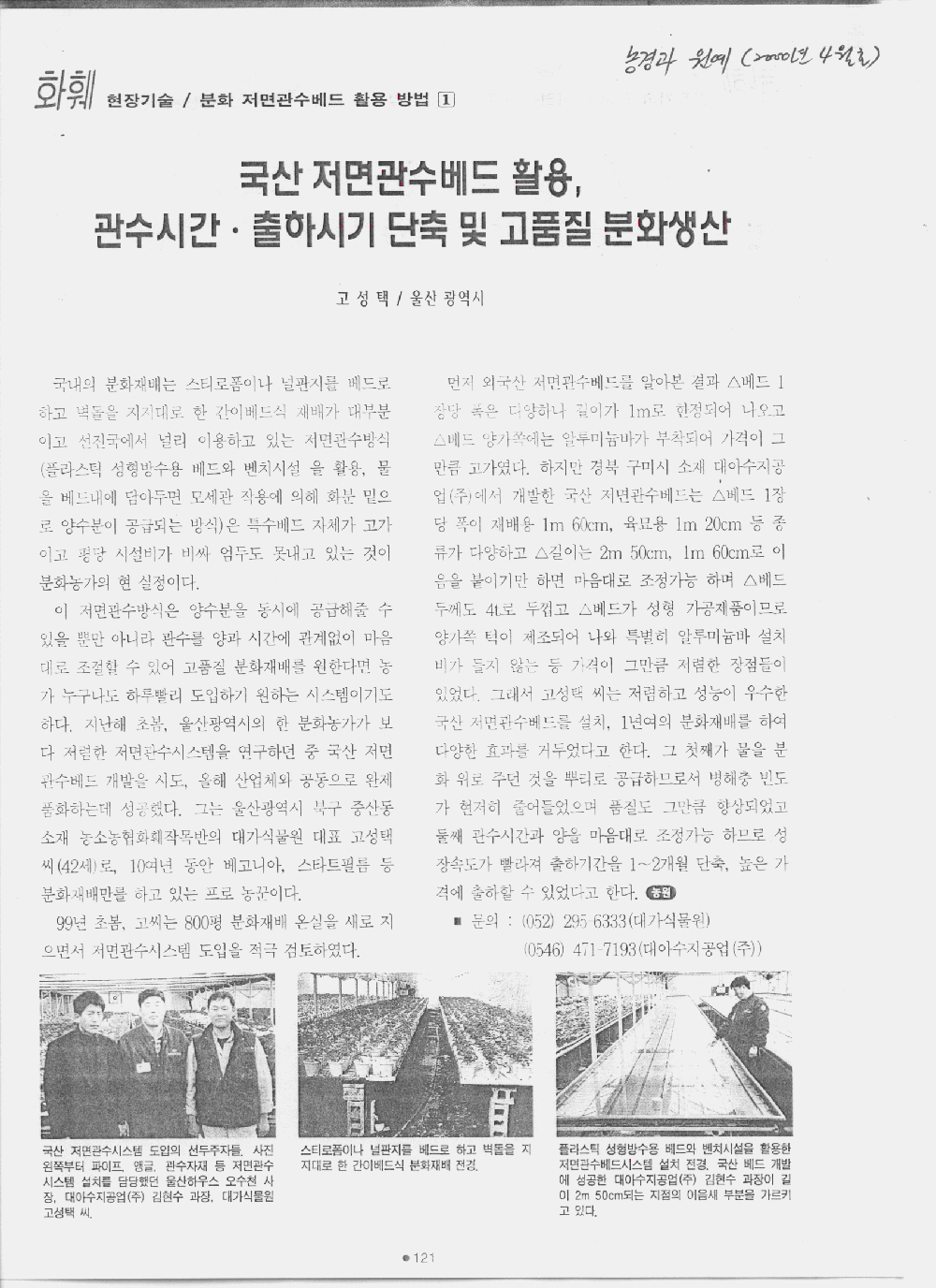 2000년 04월 화훼 현장기술/분화 저면관수베드 활용 방법 [농경과원예]